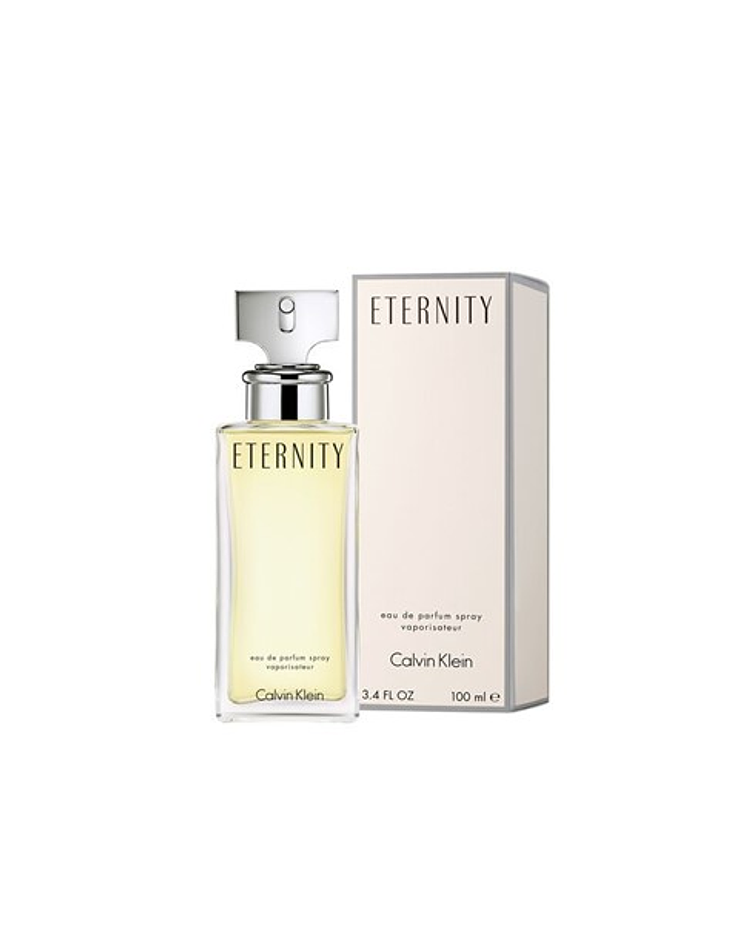 Eternity de Calvin Klein es una fragancia de la familia olfativa Floral para Mujeres. Las Notas de Salida son notas verdes, fresia, salvia, cítricos y mandarina; las Notas de Corazón son clavel, azucena, lirio de los valles (muguete), narciso, caléndula, violeta, rosa y jazmín; las Notas de Fondo son heliotropo, almizcle, sándalo, ámbar y pachulí.