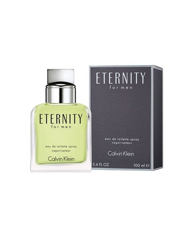 Eternity For Men de Calvin Klein es una fragancia de la familia olfativa Aromática Fougère para Hombres. Las Notas de Salida son lavanda, limón (lima ácida), bergamota y mandarina; las Notas de Corazón son bayas de enebro, salvia, cilantro, geranio, albahaca, jazmín, flor de azahar del naranjo, azucena y lirio de los valles (muguete); las Notas de Fondo son sándalo, vetiver, almizcle, palo de rosa de Brasil y ámbar.