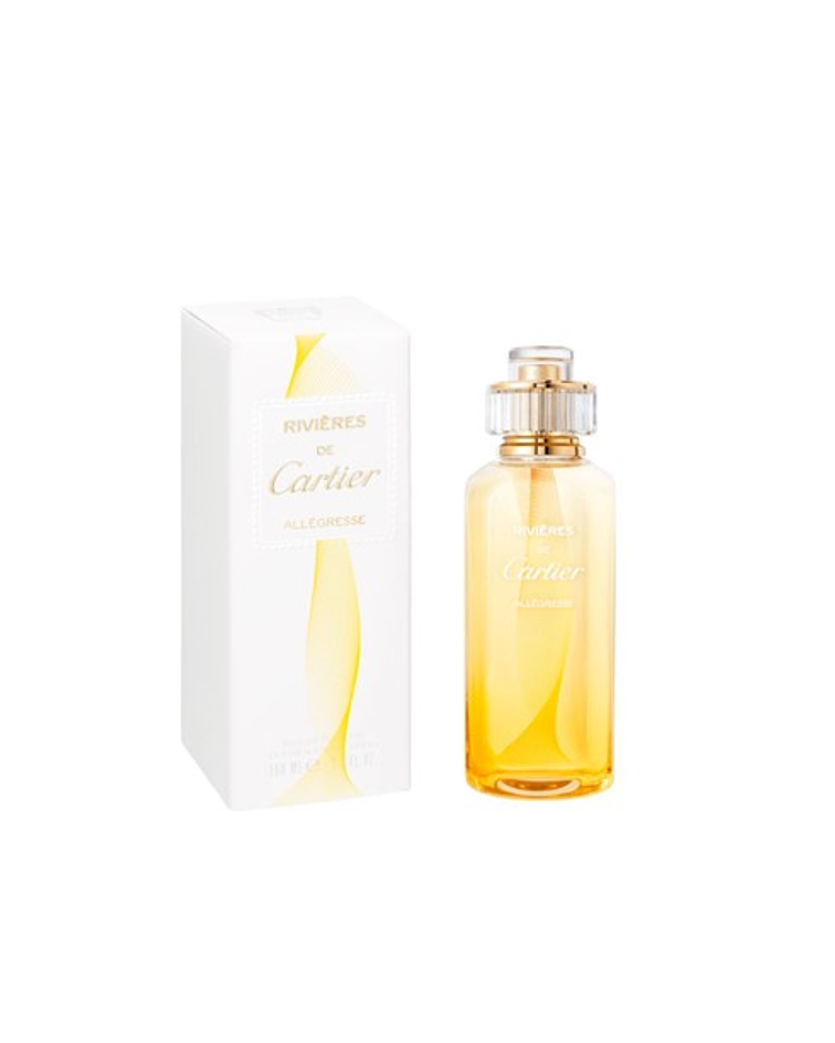 Perfumarse con Allégresse es como darse un magnífico baño de naturaleza. Himno a la vida, las fragancias Rivières de Cartier evocan el color de las emociones, esta Rivière se agita con el aroma del nardo. Se llena de vida y de intensidad, de follaje en follaje, del petit grain a la bergamota, salpicada por notas frescas y soleadas.