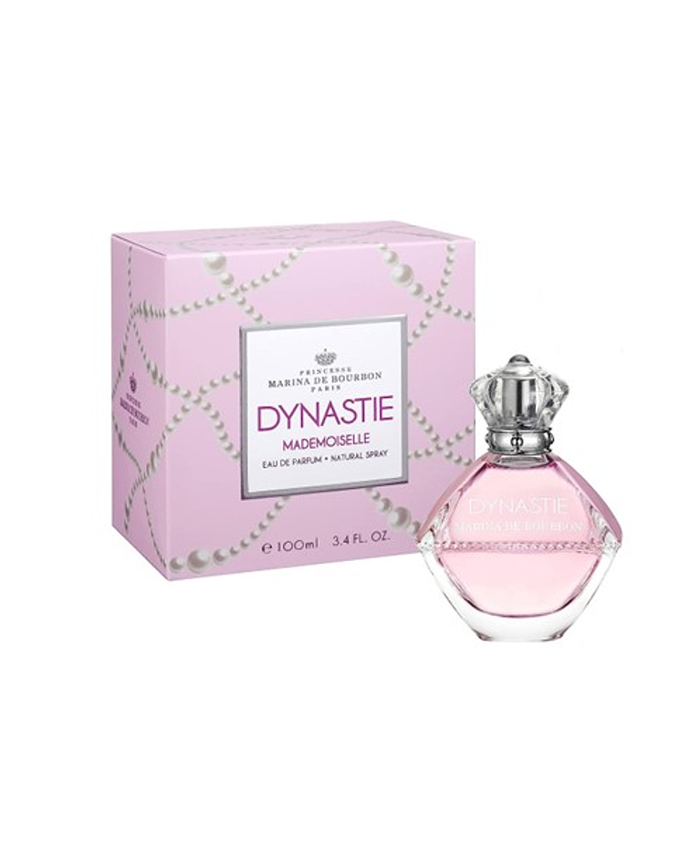 Dynastie Mademoiselle de Princesse Marina De Bourbon Una fragancia inspirada en el diamante Regent's, usado por Louis XV, que Marina imagina como un amuleto de buena suerte. Una composición fresca y floral con delicados acentos afrutados y chispeantes . El alegre talismán de una princesa traviesa y fantasiosa .