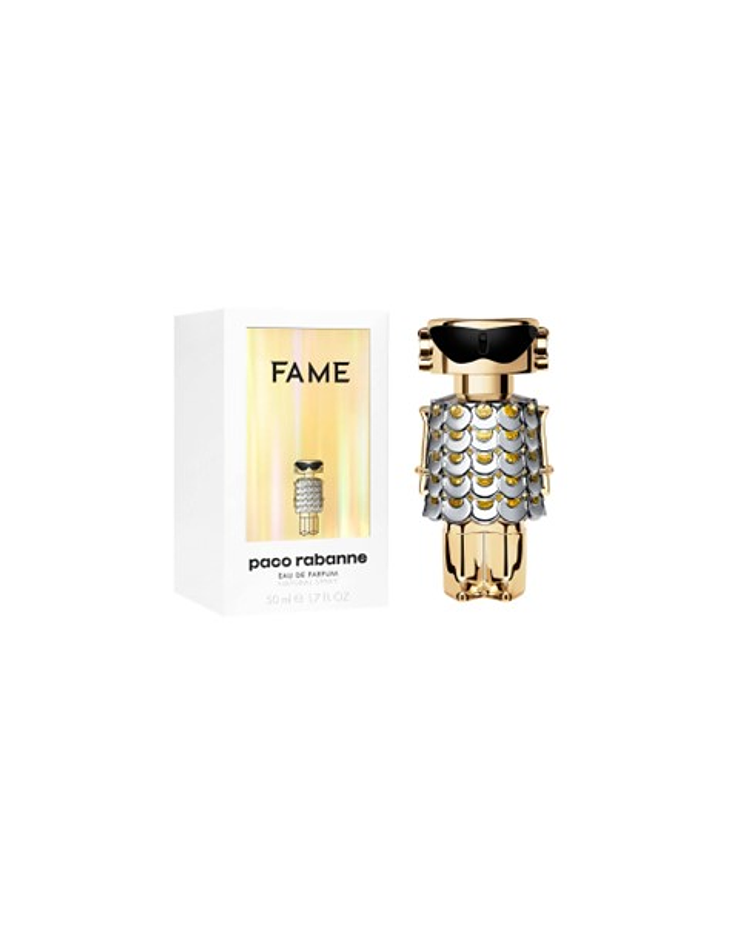 Descubre Fame, la nueva y deseada fragancia femenina de Paco Rabanne. Al transmitir el irresistible espíritu parisino de la mujer Rabanne, el perfume Fame rinde homenaje a una nueva era de feminidad. divertida. Sensual. Con carácter. Esta fragancia, la quintaesencia del lujo de vanguardia, es una mezcla de un jazmín excepcionalmente puro, un sabroso mango y un cremoso incienso de adictiva sensualidad.