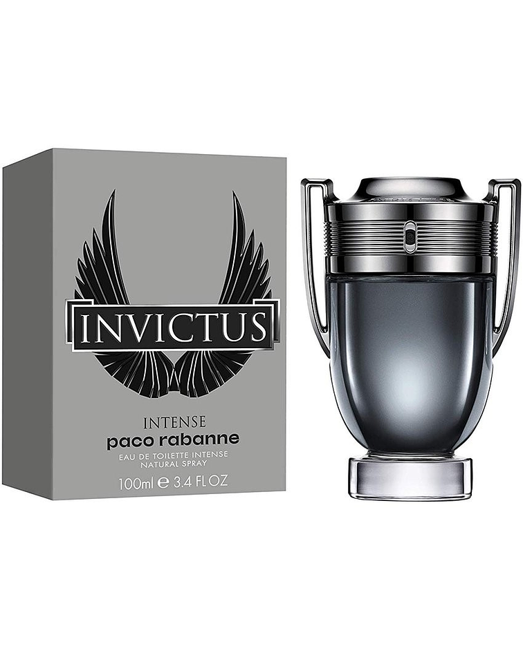 Invictus Intense de Paco Rabanne es una fragancia de la familia olfativa para Hombres. Las Notas de Salida son pimienta negra y flor de azahar del naranjo; las Notas de Corazón son laureles y whisky; las Notas de Fondo son ámbar gris, sal y ámbar.