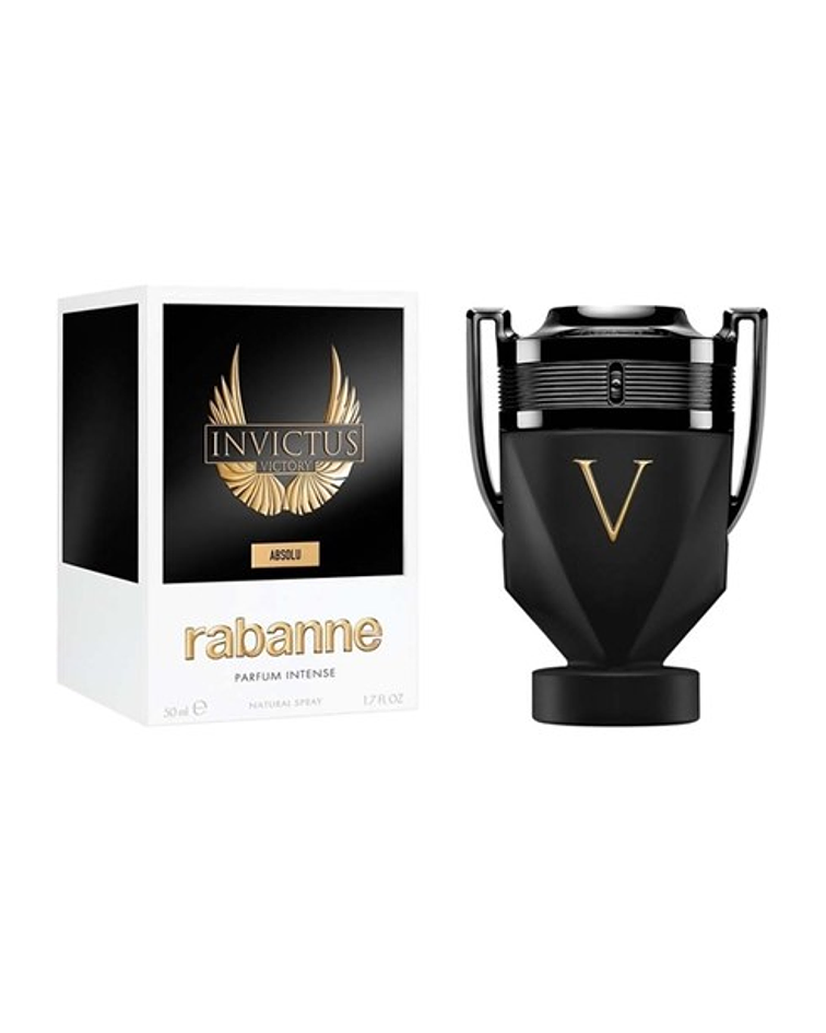 Invictus Victory Absolu de Rabanne es una fragancia de la familia olfativa Amaderada para Hombres. La Nota de Salida es pimienta negra; las Notas de Corazón son ámbar, ámbar gris y notas amaderadas; las Notas de Fondo son sándalo, Incienso y pachulí.