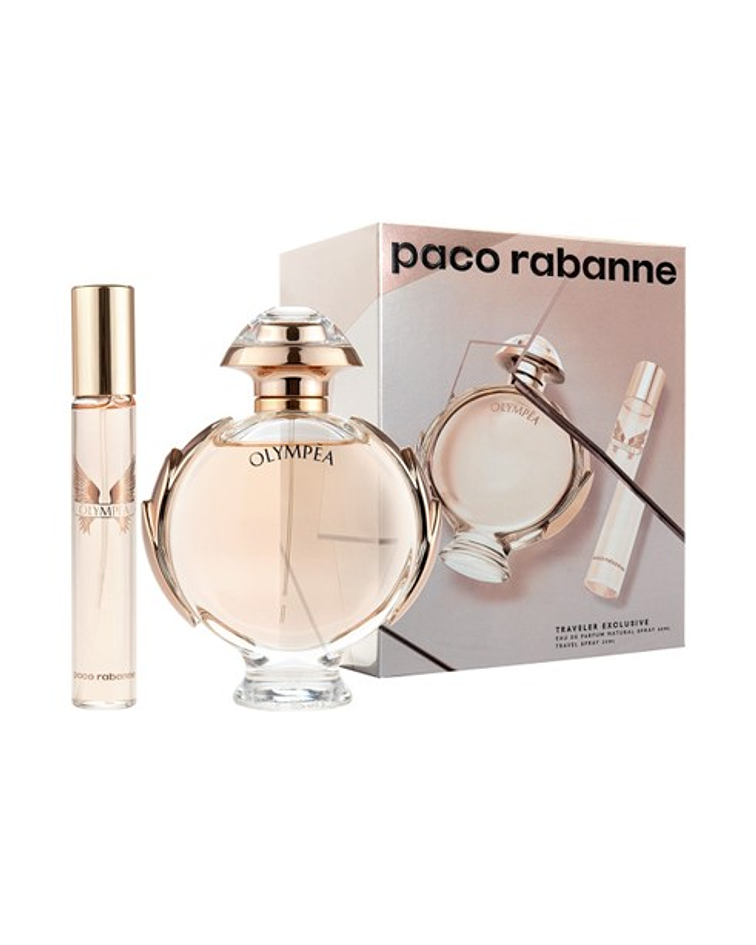 Olympéa de Paco Rabanne es una fragancia de la familia olfativa Oriental Floral para Mujeres. Las Notas de Salida son mandarina verde, jazmín de agua y flor de jengibre; las Notas de Corazón son vainilla y sal; las Notas de Fondo son ámbar gris, madera de cachemira y sándalo.