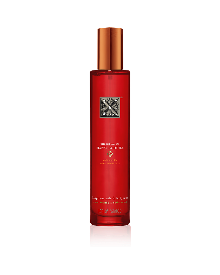 Experimenta la felicidad de la cabeza a los pies con la bruma corporal y capilar de The Ritual of Happy Buddha. Perfuma tu cabello, tu piel, el ambiente que te rodea y las sábanas con las propiedades revitalizantes de la naranja dulce y la madera de cedro, impregnándolos con una dosis de positividad que te hará sonreír durante todo el día. Su fórmula acuosa no mancha y, por lo tanto, puede utilizarse de forma segura sobre los tejidos.